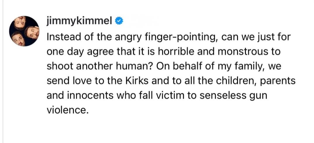 Not all who made statements are fascists, at least they didn’t come right out and admit it like Ricci did. Jimmy Kimmel’s statement was borderline, but it was still within the realm of human decency: